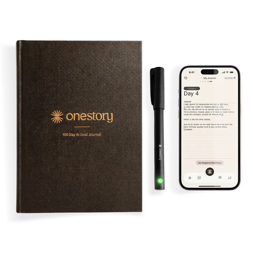 Both. One Story includes a premium physical journal and a smart pen that connects to the One Story app. The journal is where you write. The app is where your AI coach supports, tracks, and guides your journey.